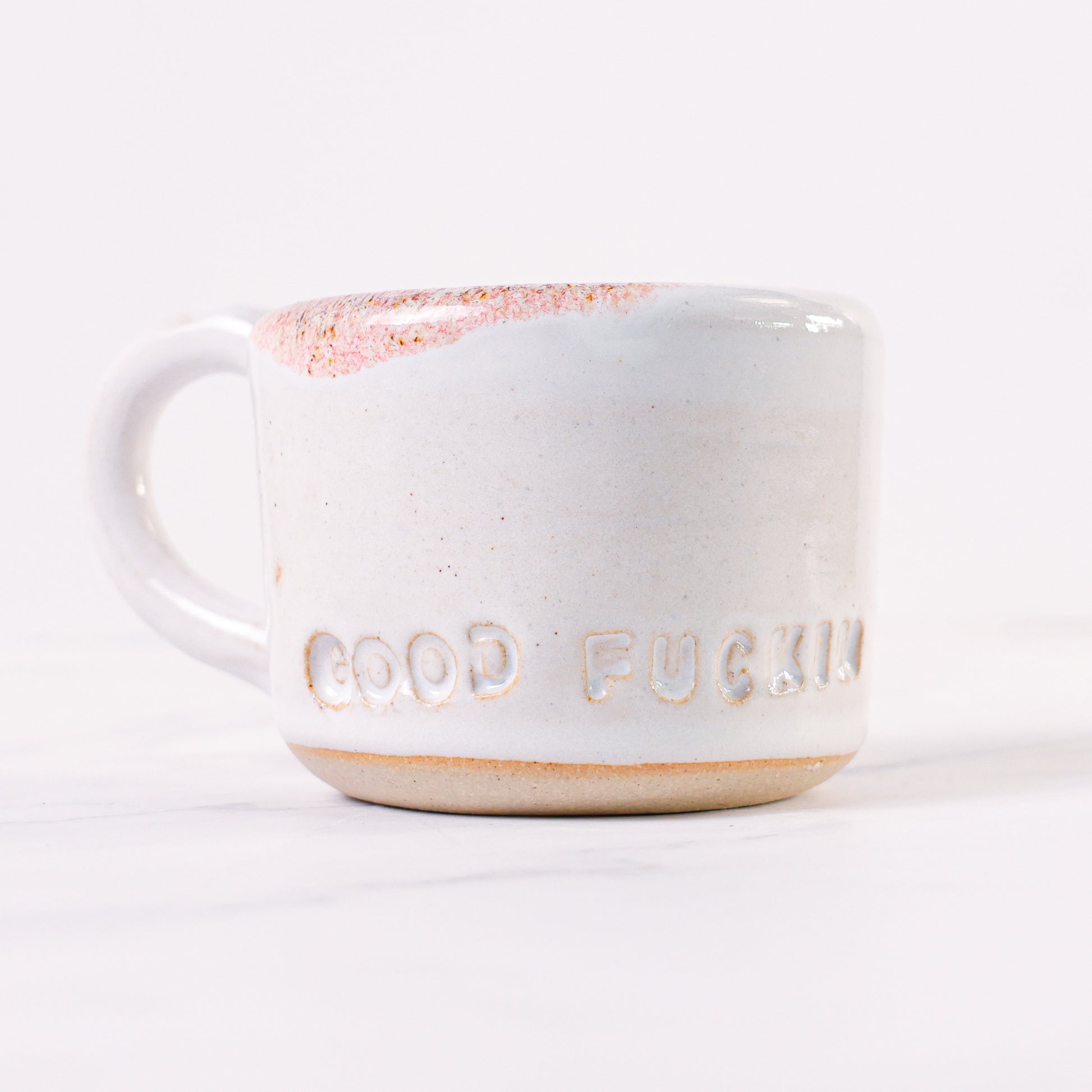 Meet your new emotional-support espresso cup, handcrafted locally, glazed in small batches, and designed for the people who function entirely on tiny doses of concentrated caffeine. Perfect for that morning shot that keeps you polite, awake, and marginally capable of being a human being.