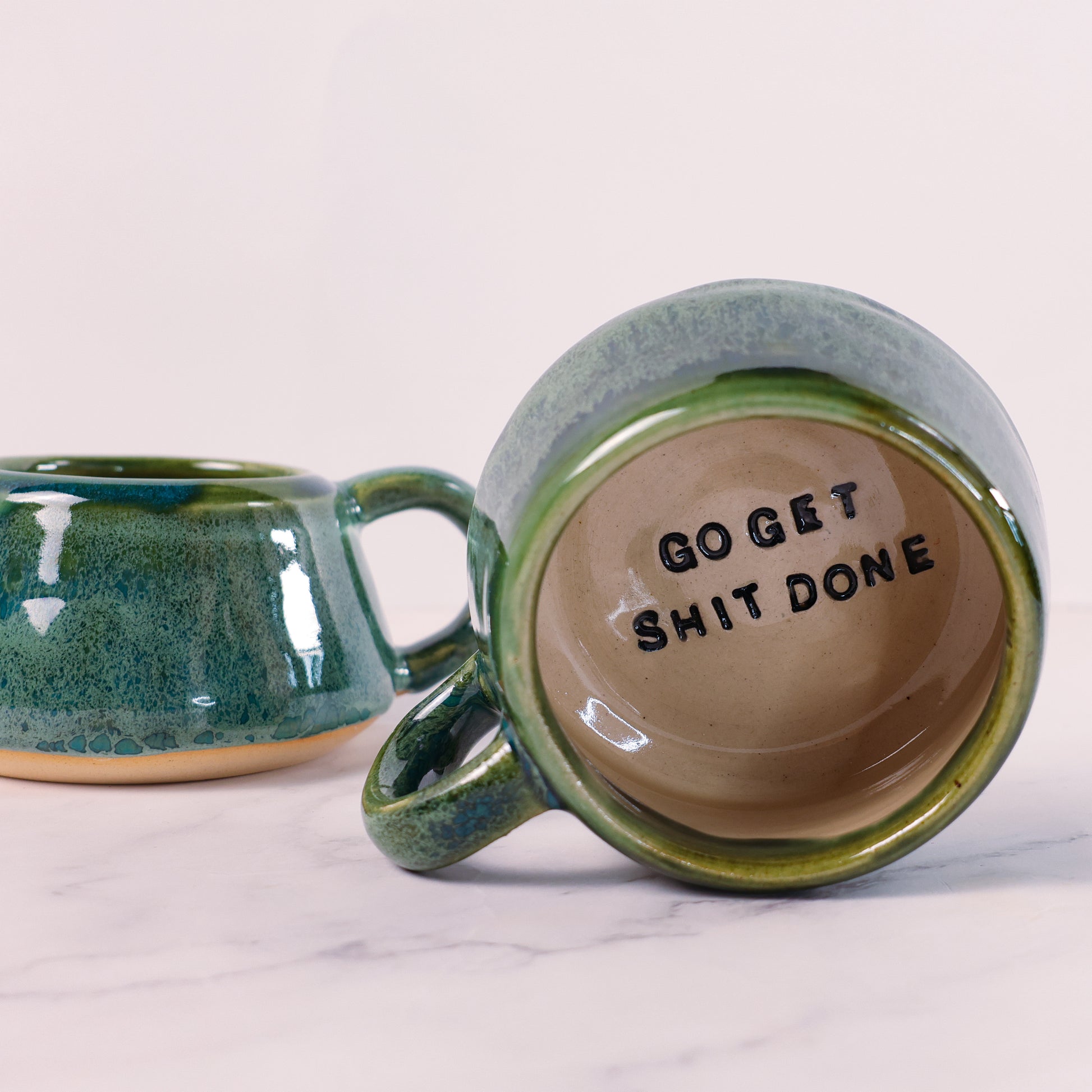 Meet your new emotional support coffee cup, handmade locally, glazed in small batches, and designed for the people who need a proper morning coffee to behave like functioning adults.